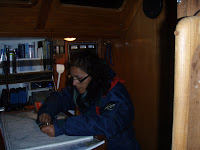 Nous avons fait de la voile au portant dans du vent de 20 à 25 kts, le comportement du bateau est très bien, comme je le dis à Danielle, le bateau est gros à manœuvrer dans les quais, par contre en mer il a des qualités marine extraordinaire, et se comporte très bien. Pour ce petit bout dans l’Atlantique Danielle nous a préparer un bon souper avec un dessert (des brownies).