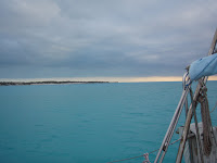 Nous avons attendus la fenêtre météo annoncée, du Sud Ouest à Ouest, virant au Nord Ouest de 10 à 15 kts, Ce fut plutôt le calme plat, pas de vent avec une longue houle de 5 pieds. Il a commencé à venter une heure avant notre arrivé sur le banc.
