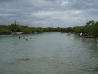 Il y a du monde sur cette petite ile. Peu de sable beaucoup de mangrove, à chaque éclaircie de mangrove des baigneurs et des barbecues, impressionnant tout ce monde. C’est en arrivant sur place ou sur eux que l’on voit ces gens, les mangroves cachent tout.